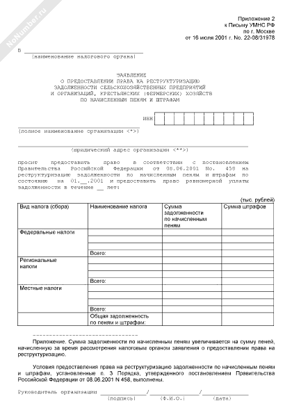 - 1842Заявление о предоставлении права на реструктуризацию просроченной задолженности сельскохозяйственных предприятий и организаций, крестьянских (фермерских) хозяйств по федеральным налогам и сборам