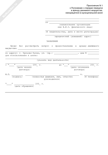 - 1848Заявление о предоставлении в аренду муниципального движимого имущества города Орехово-Зуево Московской области