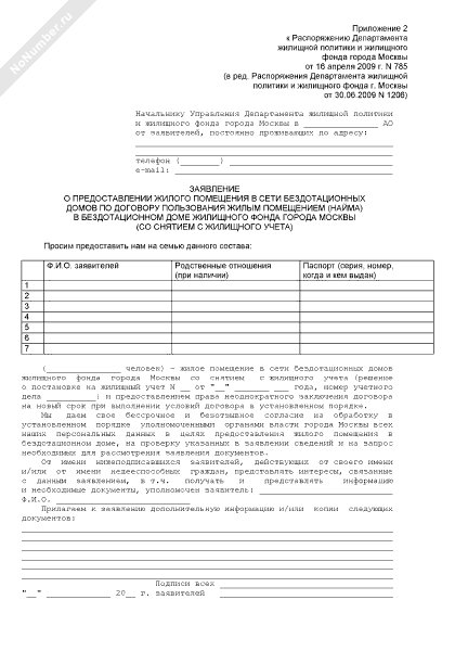 - 1851Заявление о предоставлении жилого помещения в сети бездотационных домов по договору пользования жилым помещением (найма) в бездотационном доме жилищного фонда города Москвы (со снятием с жилищного учета)
