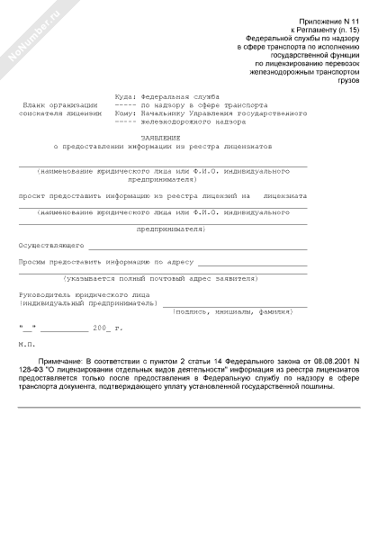 - 1870Заявление о предоставлении информации из реестра лицензиатов на осуществление деятельности в области железнодорожного транспорта (при осуществлении перевозок железнодорожным транспортом грузов)