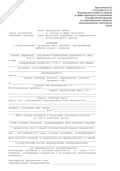 - 1869Заявление о предоставлении (продлении срока действия, переоформлении) лицензии на осуществление перевозок железнодорожным транспортом грузов