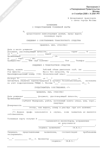 - 1868Заявление о предоставлении топливной карты владельцам малолитражных автомобилей города Москвы