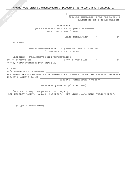- 1861Заявление о предоставлении выписки из реестра паевых инвестиционных фондов