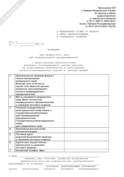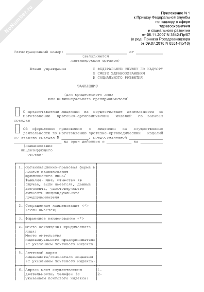 - 1882Заявление о предоставлении лицензии (об оформлении приложения к лицензии) на осуществление деятельности по изготовлению протезно-ортопедических изделий по заказам граждан (для юридического лица или индивидуального предпринимателя)