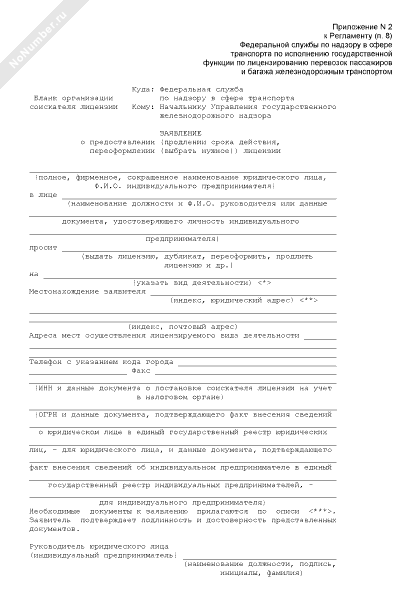 - 1893Заявление о предоставлении (продлении срока действия, переоформлении) лицензии на осуществление лицензируемого вида деятельности на железнодорожном транспорте
