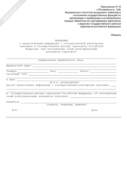 - 1904Заявление о предоставлении информации о государственной регистрации аэропорта в Государственном реестре аэропортов Российской Федерации (или изготовлении копий регистрационных документов аэропорта)