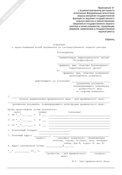 - 1902Заявление о предоставлении копий документов из государственного водного реестра