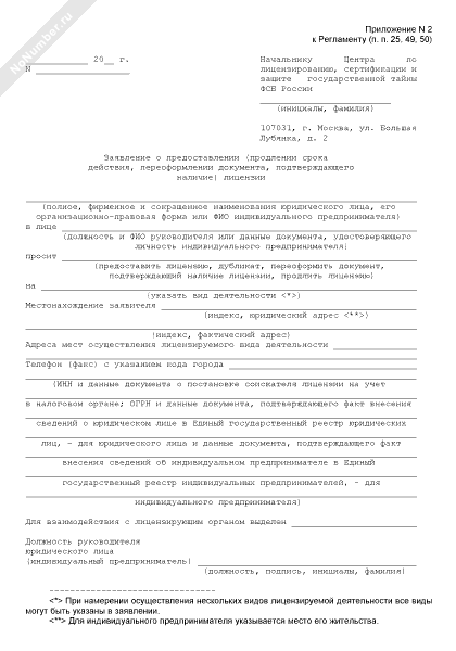 - 1910Заявление о предоставлении (продлении срока действия, переоформлении документа, подтверждающего наличие) лицензии на разработку и (или) производство средств защиты конфиденциальной информации