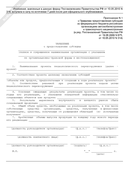 - 1905Заявление о предоставлении субсидии из федерального бюджета российским организациям автомобилестроения и транспортного машиностроения