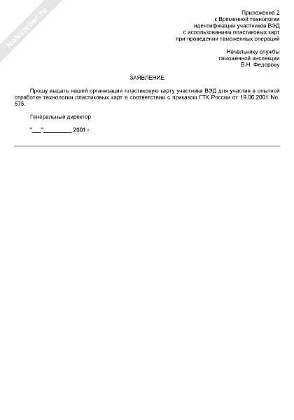 Заявление на выдачу организации пластиковой карты участника ВЭД