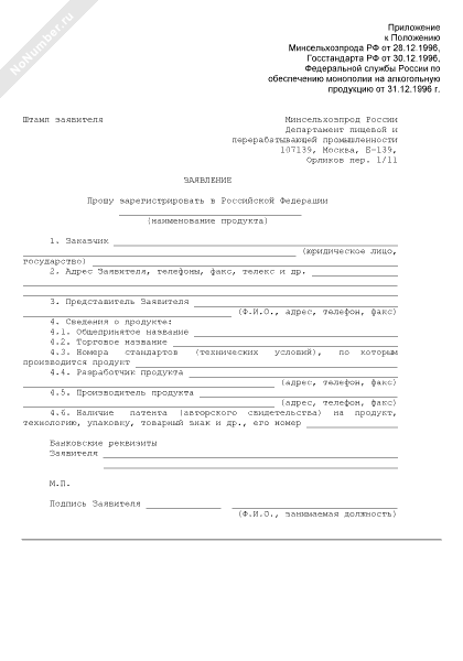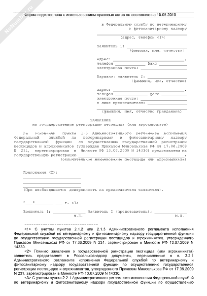 Заявление на государственную регистрацию пестицида (или агрохимиката)