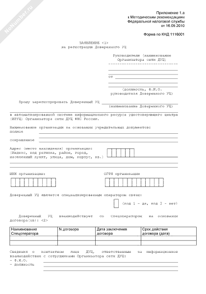 Заявление на регистрацию Доверенного удостоверяющего центра (рекомендуемый образец заполнения)