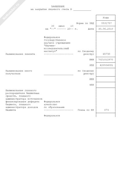 Заявление на закрытие лицевого счета в Федеральном казначействе