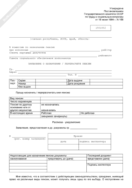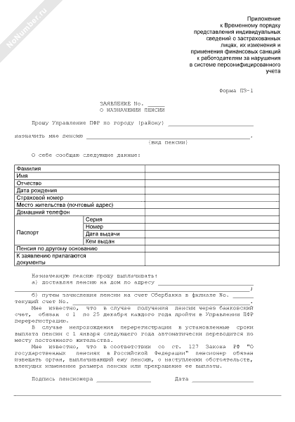 Заявление о назначении пенсии. Форма № ПЗ-1