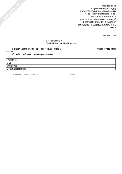 Заявление о перерасчете пенсии. Форма № ПЗ-2