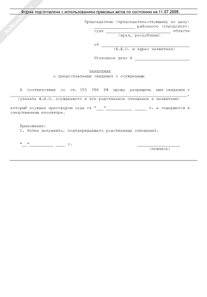 Заявление о предоставлении свидания с осужденным