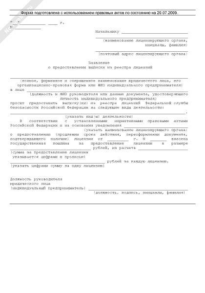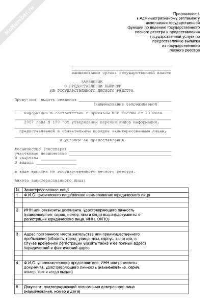 Заявление о предоставлении выписки из государственного лесного реестра (рекомендуемый образец заполнения)