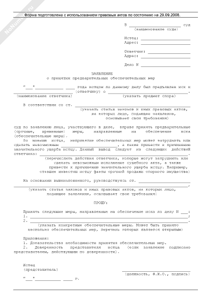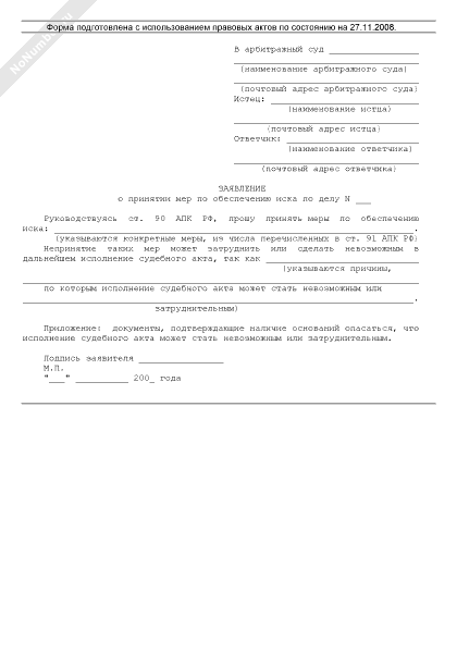 Заявление в арбитражный суд о принятии мер по обеспечению иска