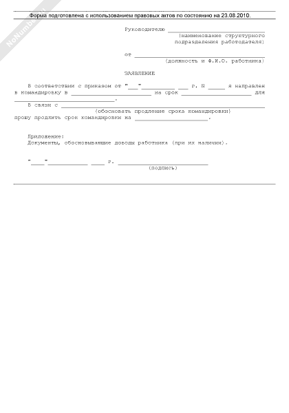 Заявление работника о необходимости продления срока командировки