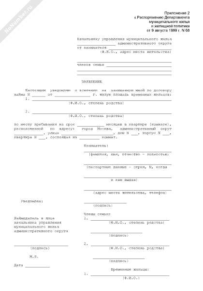 - Источник– Распоряжение Департамента муниципального жилья и жилищной политики г. Москвы от 09.08.1999 № 68 (редакция от 22.09.2005 № 590)