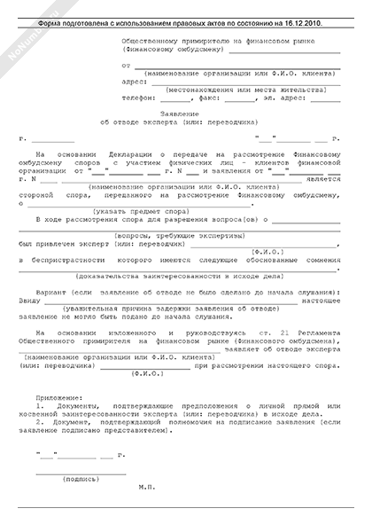 Заявление об отводе судьи (нескольких судей) в уголовном процессе