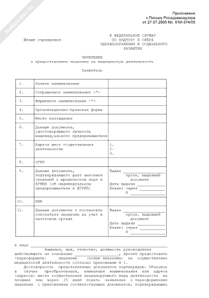 Заявление о предоставлении лицензии на медицинскую деятельность
