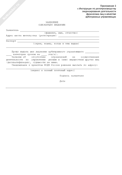 Заявление соискателя лицензии арбитражного управляющего (рекомендуемый образец заполнения)