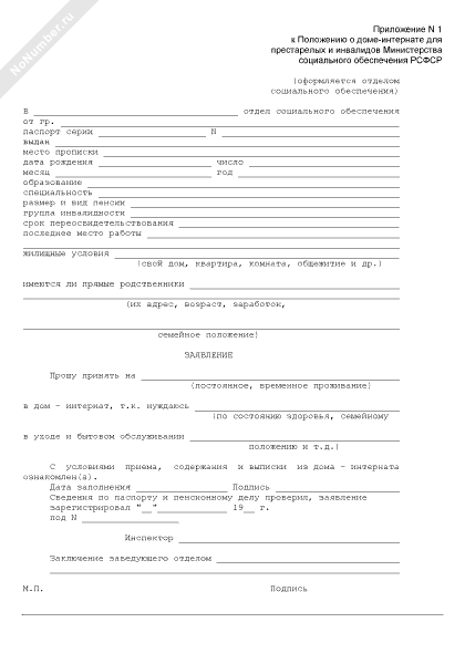 Заявление, поступающего в дом-интернат для престарелых и инвалидов