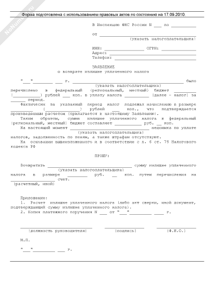 Заявление работника работодателю о возврате излишне уплаченного НДФЛ