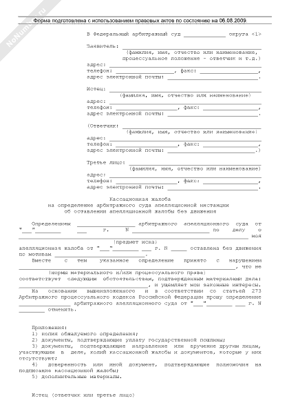 - 157Кассационная жалоба на определение арбитражного суда апелляционной инстанции об оставлении апелляционной жалобы без движения