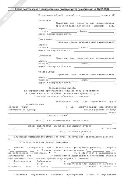 - 156Кассационная жалоба на определение арбитражного суда по делу о признании и приведении в исполнение решения иностранного суда или иностранного арбитражного решения