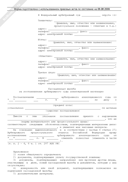 - 160Кассационная жалоба на постановление арбитражного суда апелляционной инстанции