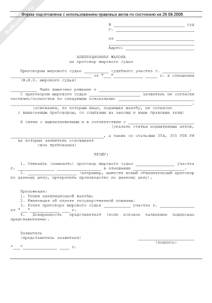 Апелляционная жалоба на приговор мирового судьи