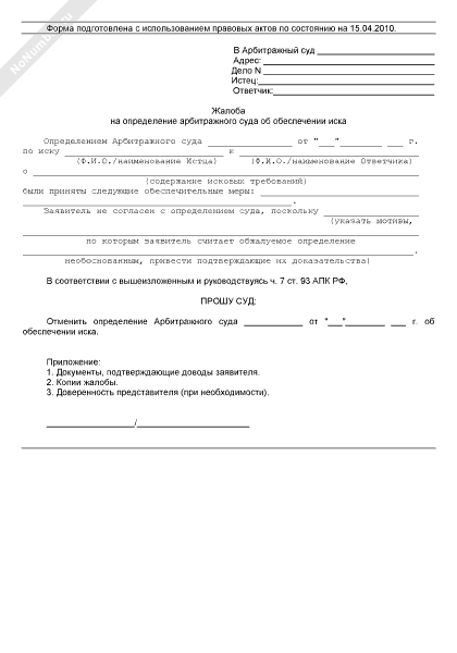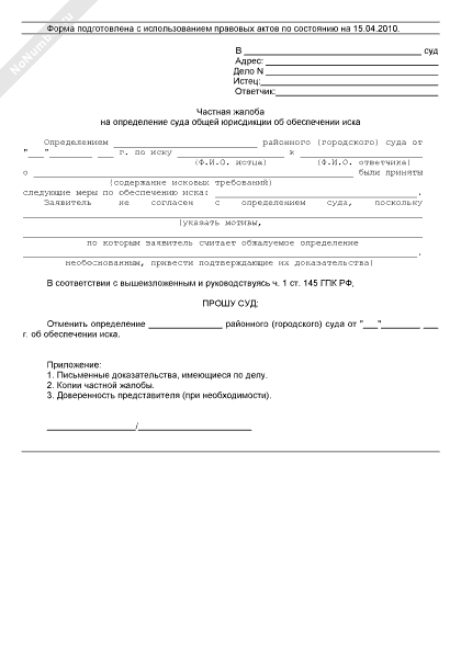 Частная жалоба на определение суда общей юрисдикции об обеспечении иска