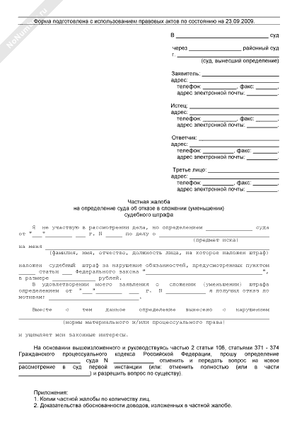Апелляционная жалоба на определение суда о наложении судебного штрафа