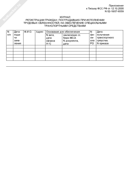 - 505Журнал регистрации граждан, пострадавших при исполнении трудовых обязанностей, на обеспечение специальными транспортными средствами