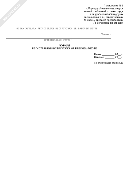 - 504Журнал регистрации инструктажа на рабочем месте для руководителей и других должностных лиц, ответственных за охрану труда на предприятиях и в организациях отрасли связи
