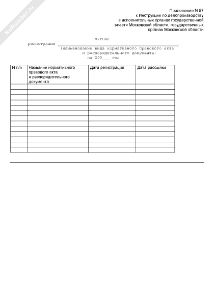 - 511Журнал регистрации нормативного правового акта (распорядительного документа) в исполнительных органах государственной власти Московской области, государственных органах Московской области
