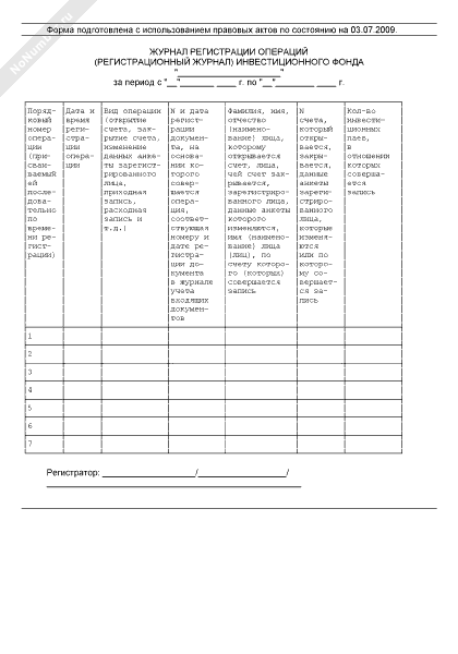 - 508Журнал регистрации операций (регистрационный журнал) инвестиционного фонда