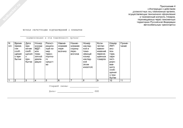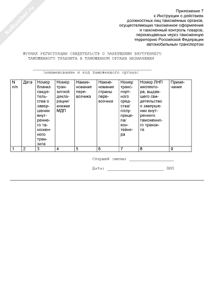 - 518Журнал регистрации свидетельств о завершении внутреннего таможенного транзита в таможенном органе назначения