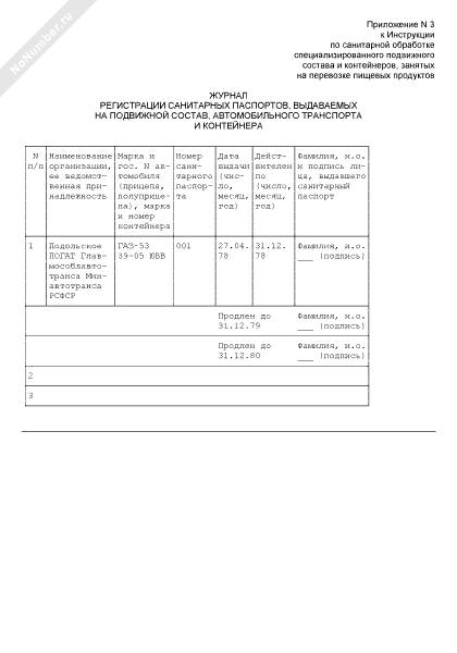 - 506Журнал регистрации санитарных паспортов, выдаваемых на подвижной состав, автомобильного транспорта, занимающегося перевозкой пищевых продуктов