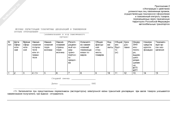 - 515Журнал регистрации транзитных деклараций в таможенном органе отправления