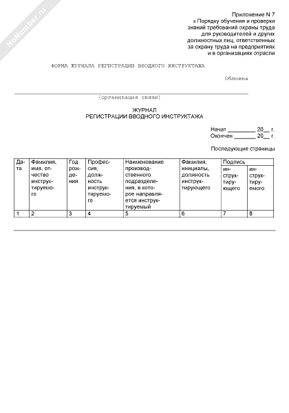 - 503Журнал регистрации вводного инструктажа для руководителей и других должностных лиц, ответственных за охрану труда на предприятиях и в организациях отрасли связи