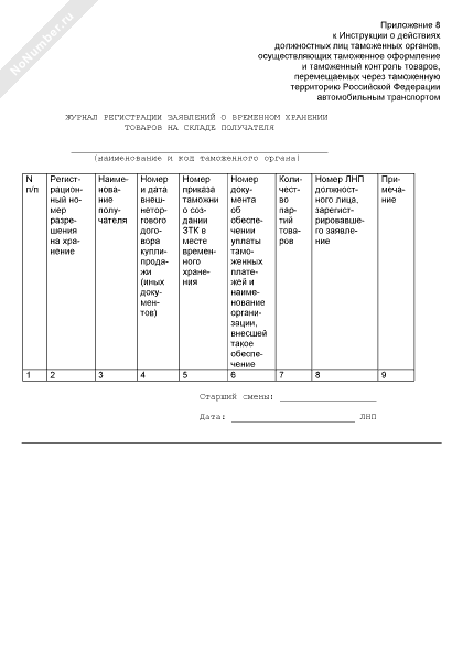 - 519Журнал регистрации заявлений о временном хранении товаров на складе получателя