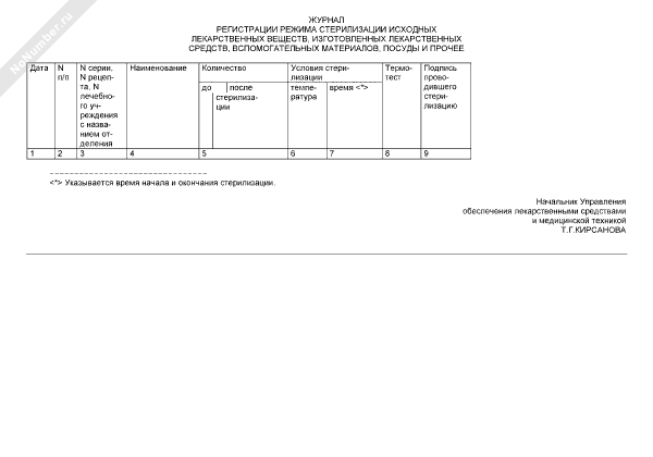 - 544Журнал регистрации режима стерилизации исходных лекарственных веществ, изготовленных лекарственных средств, вспомогательных материалов, посуды и прочее