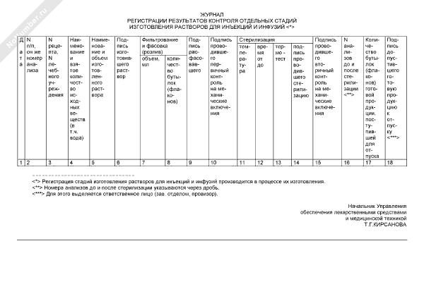 - 543Журнал регистрации результатов контроля отдельных стадий изготовления растворов для инъекций и инфузий