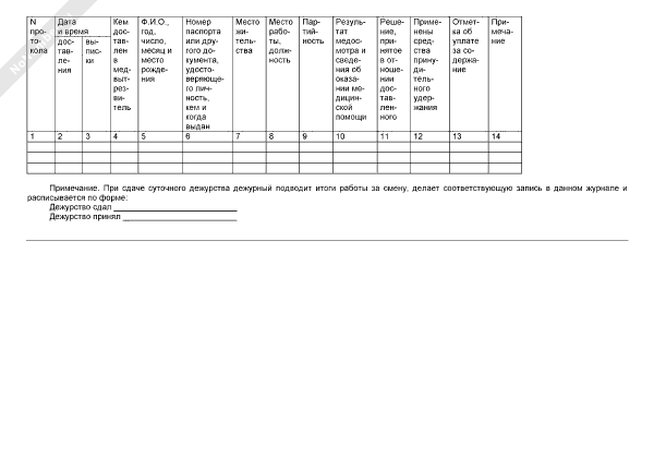 - 596Журнал регистрации лиц, доставленных в медицинский вытрезвитель при отделе внутренних дел