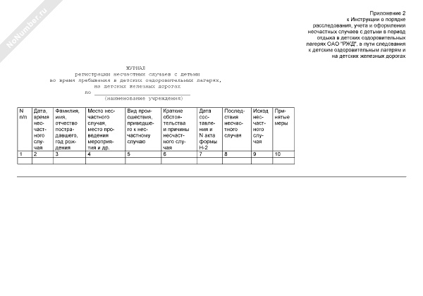 - 597Журнал регистрации несчастных случаев с детьми во время пребывания в детских оздоровительных лагерях, на детских железных дорогах