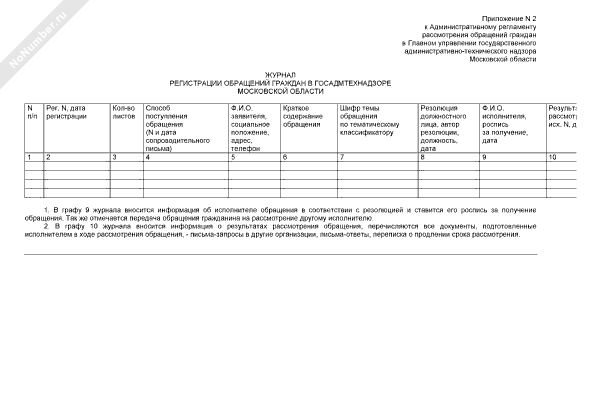 - 594Журнал регистрации обращений граждан в главное управление Госадмтехнадзора Московской области