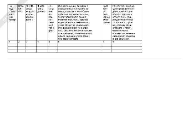 - 593Журнал регистрации приема граждан директором (заместителем директора) органа кадастрового учета
